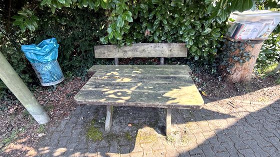 - Die Bänke an den Infotafel-Plätzen laden zum Sitzen und Verweilen ein. Wir erhoffen uns, dass die Bänke das Ortsbild deutlich verbessern. Die Bänke dienen NICHT zum Abstellen von Dingen, die man verschenken möchte, oder gar als Sperrmüll loswerden will. Auch Schadstoffe möchten wir dort nicht stehen haben.